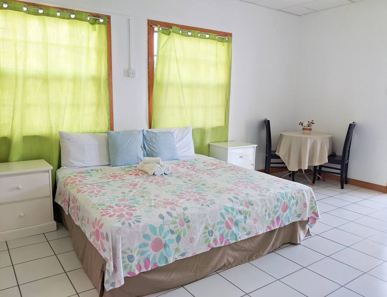 Discover Seclusion and Comfort: Our Guest House is Tucked Away in a Quiet Residential Area. Located in a peaceful residential area with only a few houses on our road, our guest house provides a tranquil escape from the hustle and bustle of everyday life. Although we are tucked away, you can still enjoy easy access to nearby amenities, including an on-site restaurant at our guest house. If you're in the mood for some delicious Trinidadian cuisine, a popular restaurant is just a short walk away. Whether you're looking for a quick bite or a hearty meal, you'll find plenty of options to satisfy your appetite. Book your stay with us today and experience the perfect blend of seclusion and comfort!